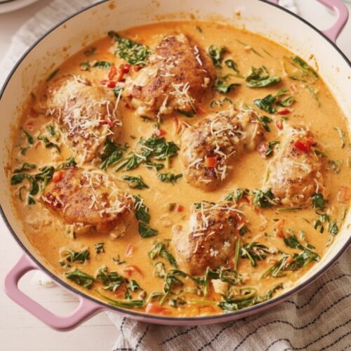 Add chicken back – Place the chicken into the sauce and cook gently for another 10–12 minutes until fully cooked.